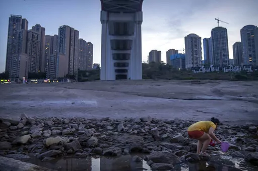 China’s Yangtze River is drying up, a year after deadly flooding. China is baking under what is a record-long heat wave, already into its third month, with a preliminary report of an overnight low temperature only dipping down to 94.8 degrees (34.9 degrees Celsius) in the heavily populated city of Chongqing. And in western China flooding from a sudden downpour has killed more than a dozen people.